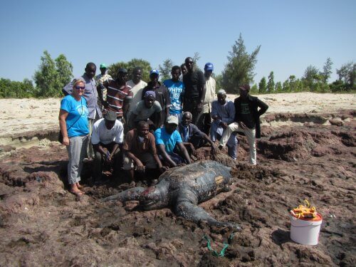 Beginning in 2014, we began quarterly surveys of the north coast between Dakar and St. Louis, Senegal to document stranded sea turtles, cetaceans, and other wildlife. In 2016, we also began responding to stranded dolphins, whales and sea turtles on Senegal’s central coast.