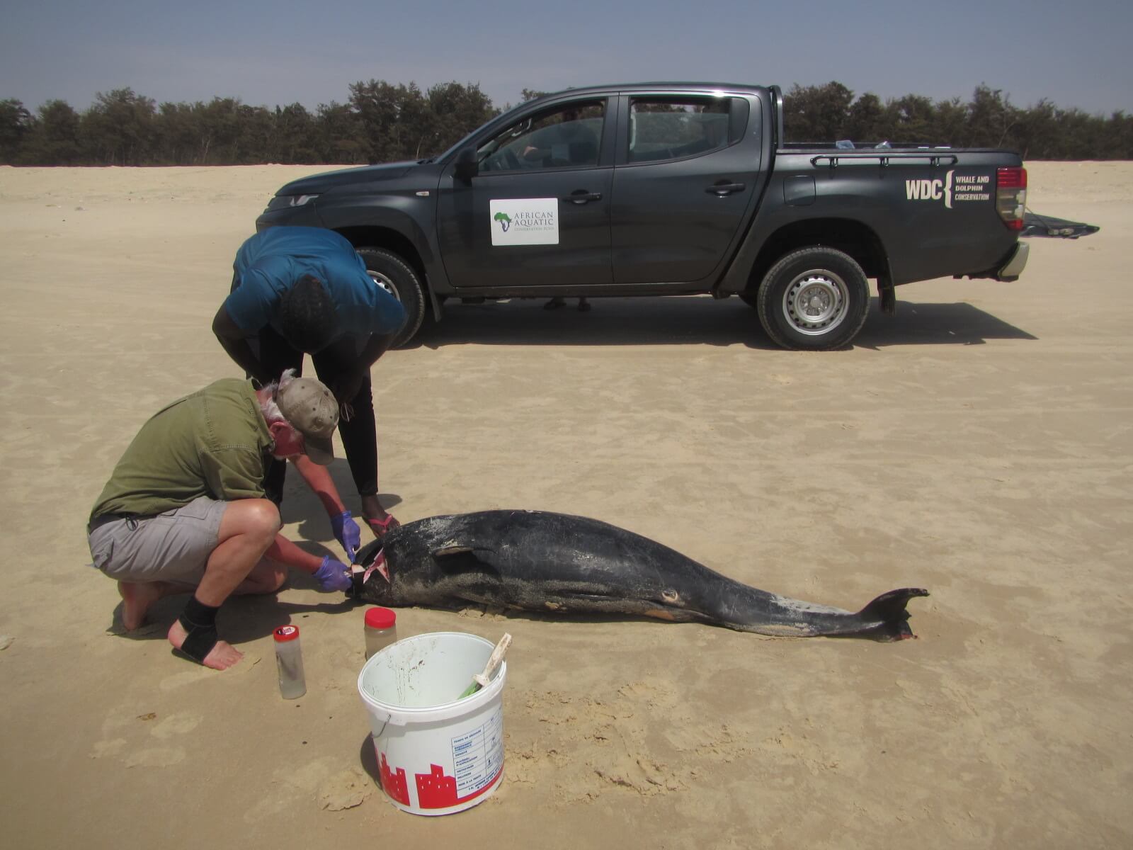 Beginning in 2014, we began quarterly surveys of the north coast between Dakar and St. Louis, Senegal to document stranded sea turtles, cetaceans, and other wildlife. In 2016, we also began responding to stranded dolphins, whales and sea turtles on Senegal’s central coast.